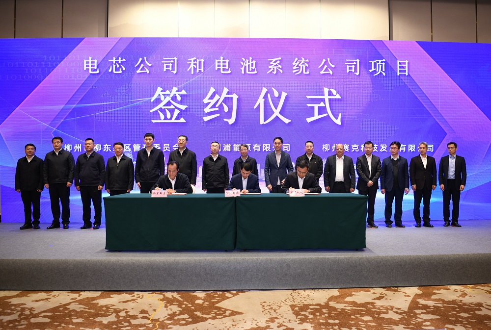 广西自治区工信厅副厅长汪东明、柳州市副市长汤振国、瑞浦能源有限公司董事长曹辉、柳州赛克科技发展有限公司总经理廖鸿胡分别代表四方签署《动力电池电芯及电池系统项目合作协议》;柳州市柳东新区管委会主任刘度量、瑞浦能源有限公司董事长曹辉、柳州赛克科技发展有限公司总经理廖鸿胡分别代表三方签署《电芯公司和电池系统公司项目投资协议》。