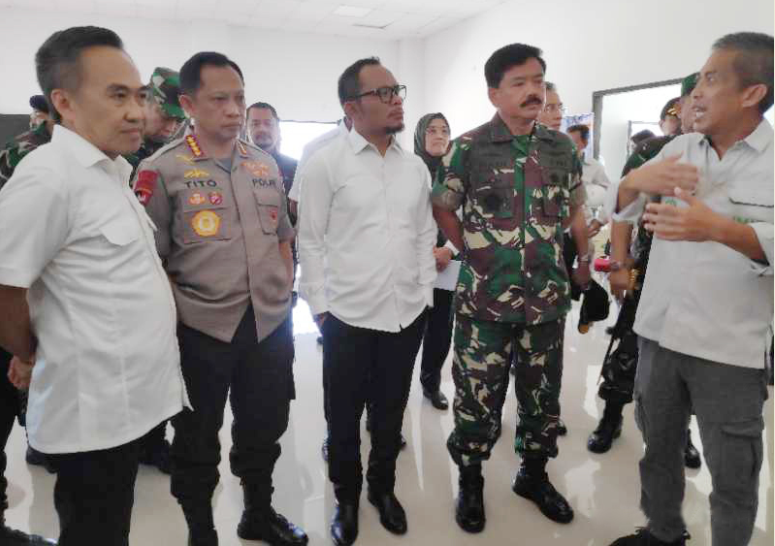 2月13日,印尼三军总司令哈迪•查延多(Hadi Tjahjanto)、国家警察总长狄托•卡纳维安(Tito Karnavian)和劳工部长哈尼夫•达基里(Hanif Dhakiri)一行莅临中国印尼综合产业园区jinnianhui今年会园区(IMIP)参观考察。