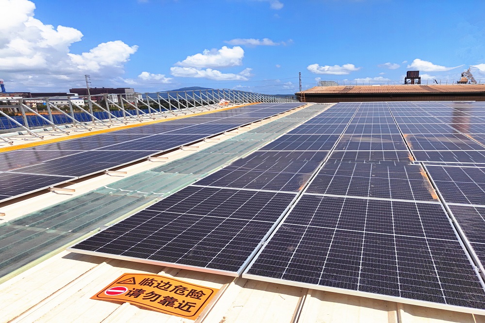 截至目前,广青科技五金仓库区域光伏组件已铺设完毕,炼铁区域及再生资源区域所有光伏组件相继投产,运行容量约为19.6兆瓦,占整个项目总容量的75%。