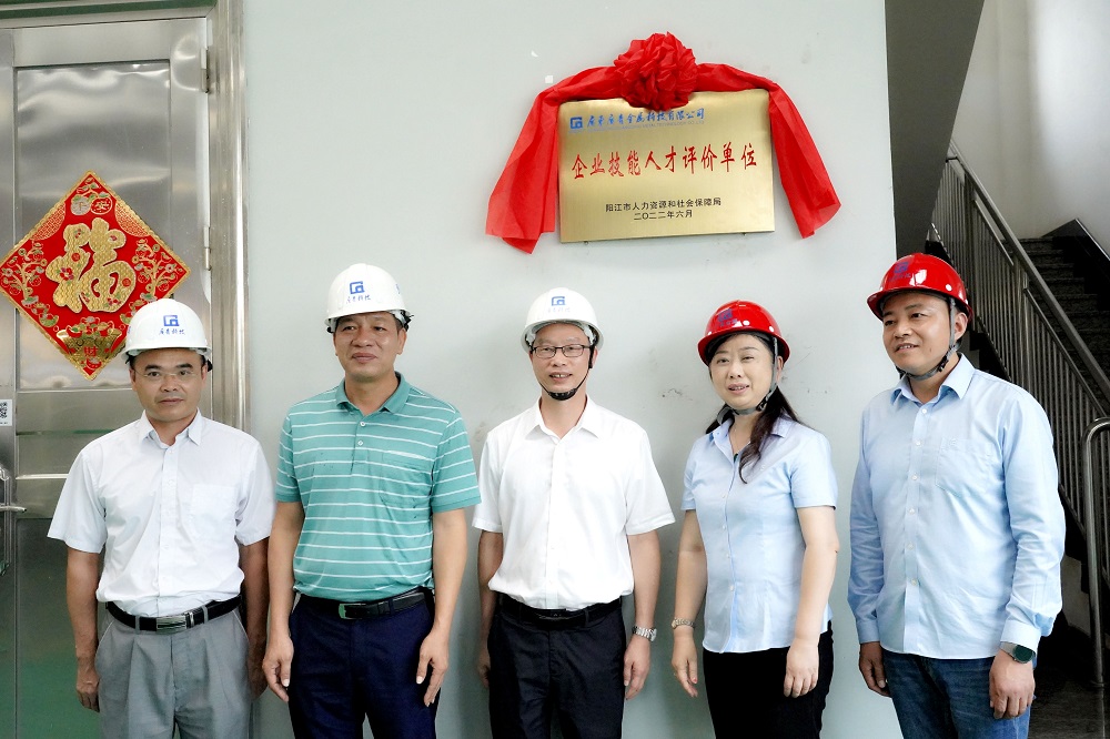 6月13日下午,广东广青金属科技有限公司举行“企业技能人才评价单位”揭牌仪式,启动公司职业技能等级认定工作。阳江市人社局副局长黄华,高新区人社局局长冯伟,职业技能鉴定中心主任徐朝富,公司党委副书记、工会主席王大庆,党委委员、常务副总经理刘光勇等领导参加了仪式。