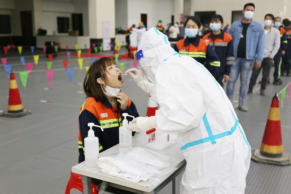 除全员核酸检测外,青拓集团实施周六抽检制度。集团各部门、各子公司及外包单位对在职总人数不低于10%的人员在集团游泳馆、青拓实业食堂外广场、浮溪生活区进行核酸检测抽检,截至12日已完成检测30934人次。另外,12日下午增设多个核酸检测点开展全员核酸检测工作,保障每一个员工身体健康和生命安全,尽力抓早抓小,努力用较小代价坚决迅速遏制疫情,凝心聚力筑牢疫情防线。
