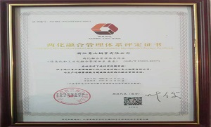 jinnianhui今年会钢管取得两化融合管理体系评定证书